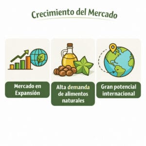 El mercado mundial de alimentos saludables y productos de origen vegetal ha experimentado un crecimiento constante en los últimos años. Dentro de esta tendencia, el Sacha Inchi se ha posicionado como uno de los superalimentos con mayor potencial debido a su alto valor nutricional.